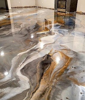 Add a touch of luxury with our seamless, glossy metallic epoxy flooring—stylish and strong.
